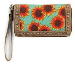 Ariat Women’s Buffalo And Multi Colored Stripes Clutch With Turquoise Leather Trim And Wristlet