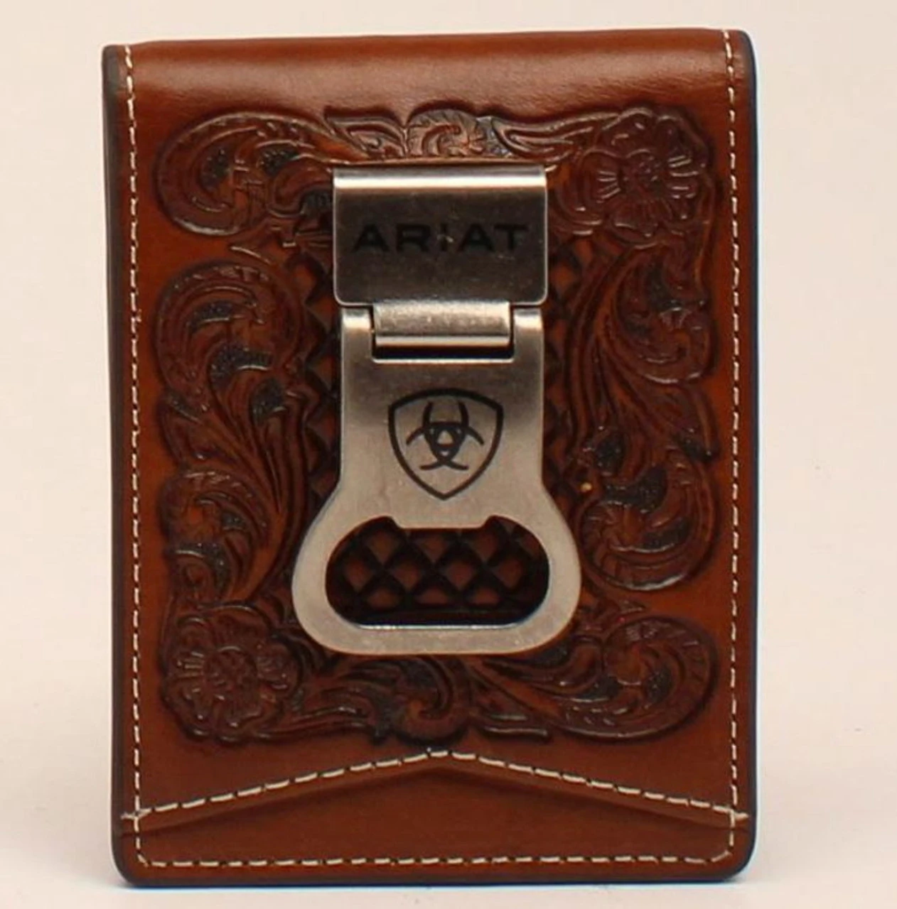 This Ariat bifold money clip by M&F Western Products has basketweave and floral embossing. Perfect for the guy who doesnâ€t want to carry a large wallet.
