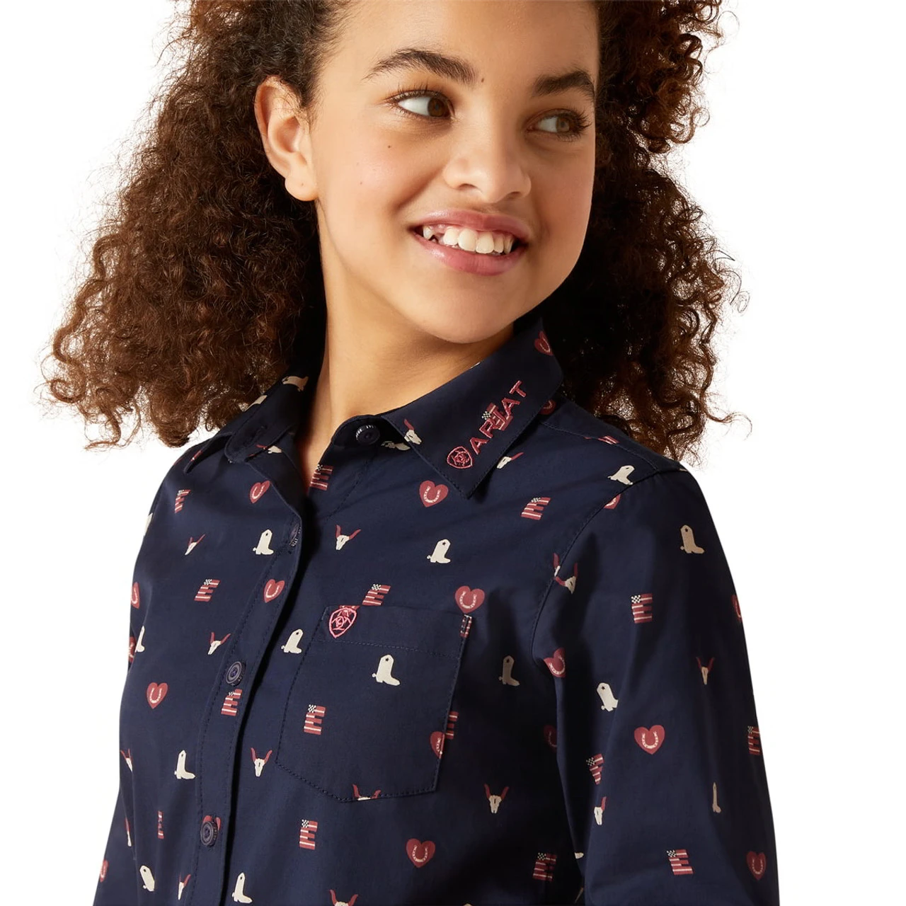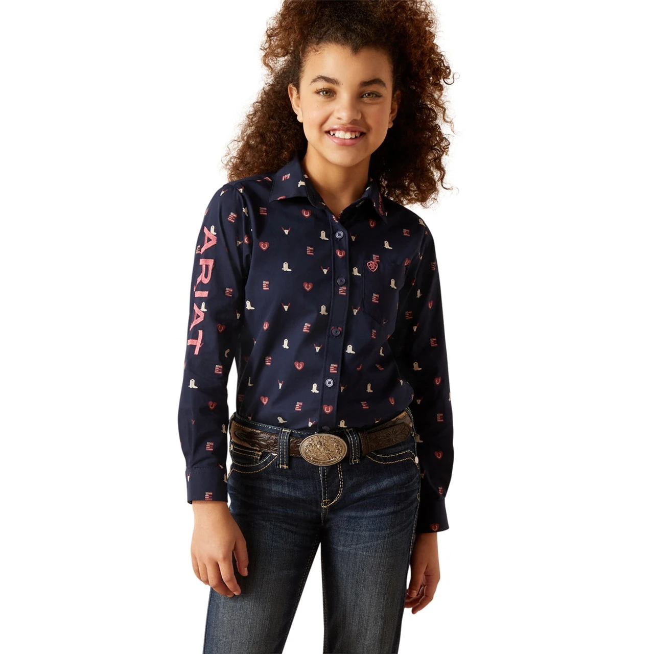 Every budding rodeo star needs a good button-up. This one mixes Western styling with a bold ombre pattern to create a shirt she’ll wear from school to the barn.