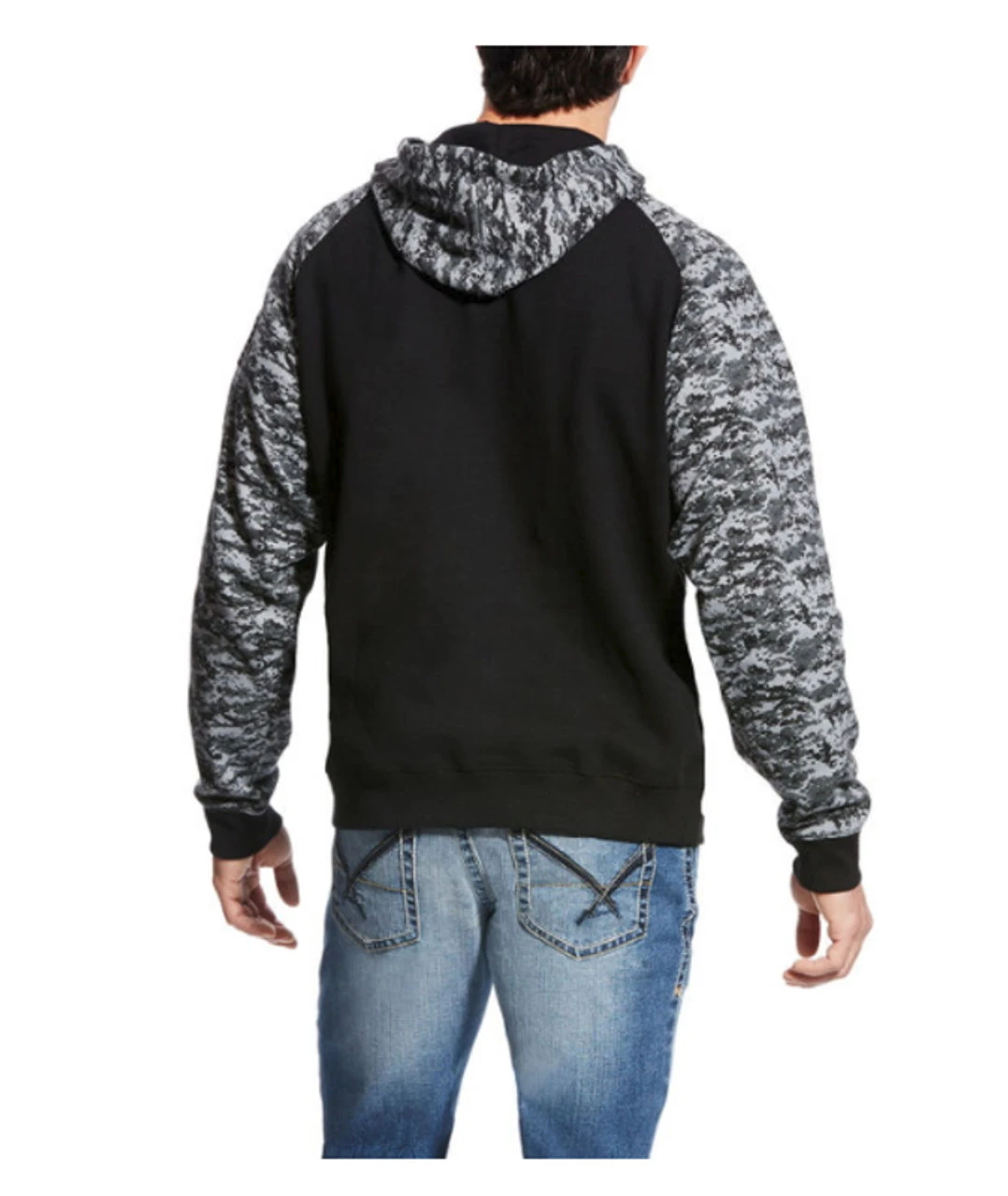 - Camo-print adjustable hood, sleeves and kangaroo pocket