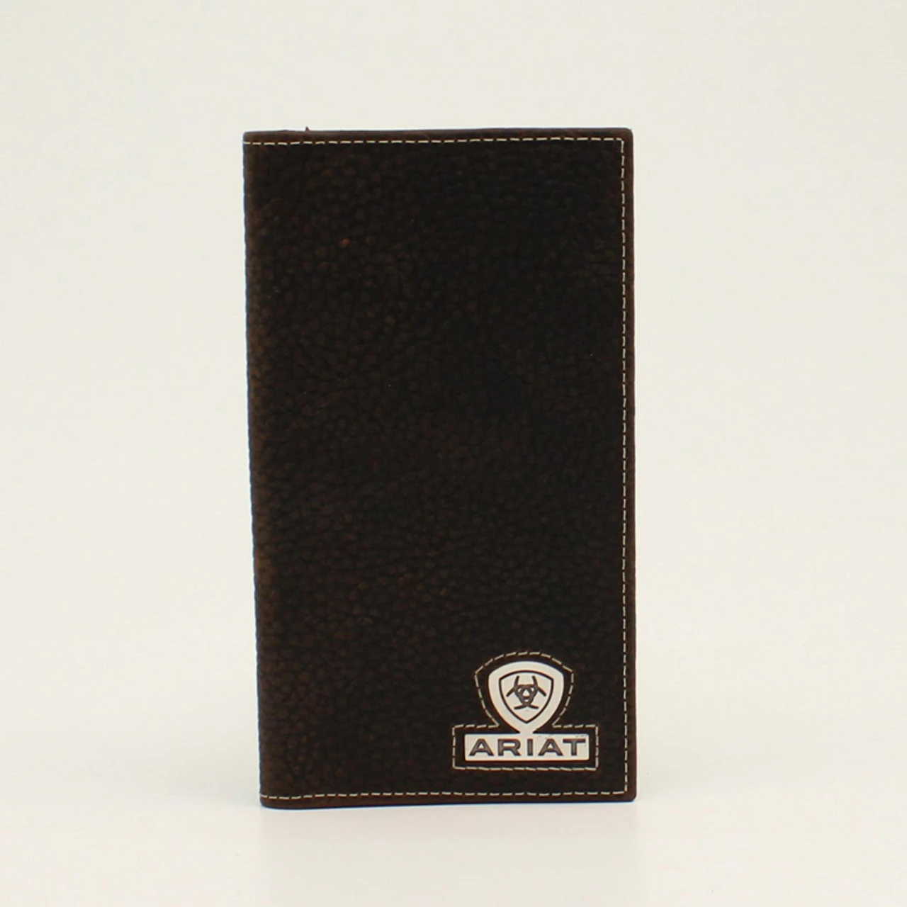 Stay organized with this rodeo style Ariat wallet by M&F Western Products. Genuine leather with Ariat shield logo concho on bottom right corner. Features multiple compartments for your credit cards, cash and ID.