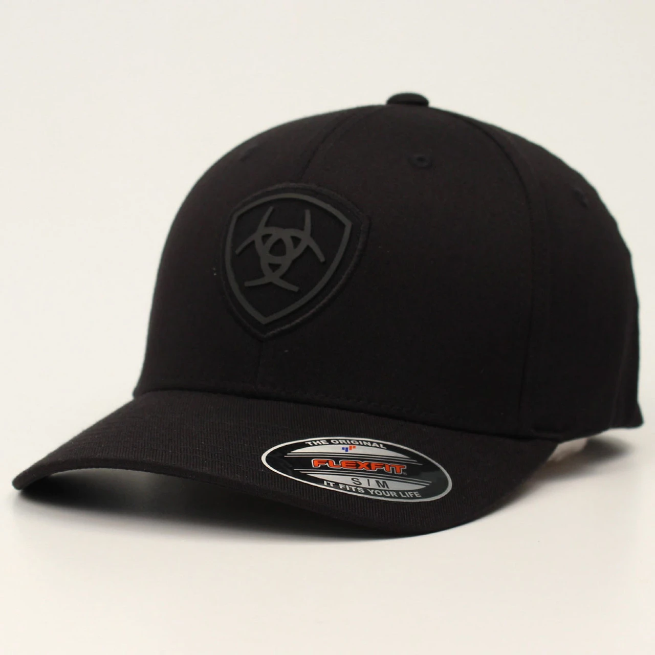Comfortable Ariat menâ€s Flex Fit cap by M&F Western Products. Ariat logo patch on the front of the cap. Black Sizes: S/M and L/XL 6 Panel Patch with Ariat Logo