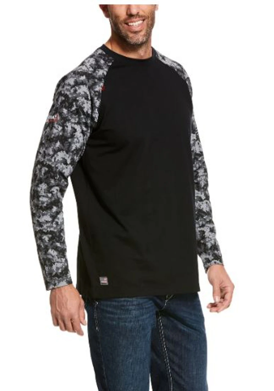Ariat Mens Long Sleeve FR Baseball Shirt, Black Camo