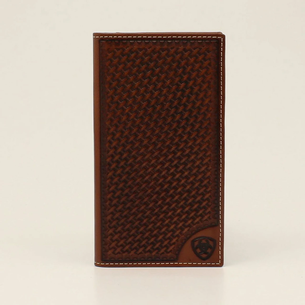 Stay both organized and in style with this Ariat rodeo wallet by M&F Western Products. Genuine leather with Ariat shield logo. Features multiple compartments for your credit cards, cash and ID.