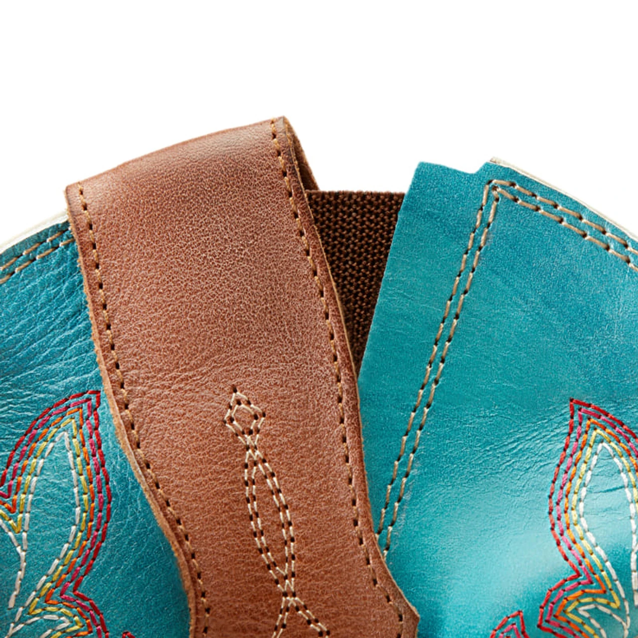 Classic styling and superior support make this a reliable choice for working or riding. Made of full-grain leather, it also features secret stretch panels that help it go on easier and fit a wide range of calves. ATS technology provides ergonomic support on uneven terrain StretchFit panels under the pull tabs give an additional inch to fit a wide range of calves Removable All Day Cushioning insole Duratread™ sole is extremely durable while still letting your foot flex Five-row stitch pattern Brown Boot with Light Blue Shaft Full-grain leather foot and upper Mesh lining