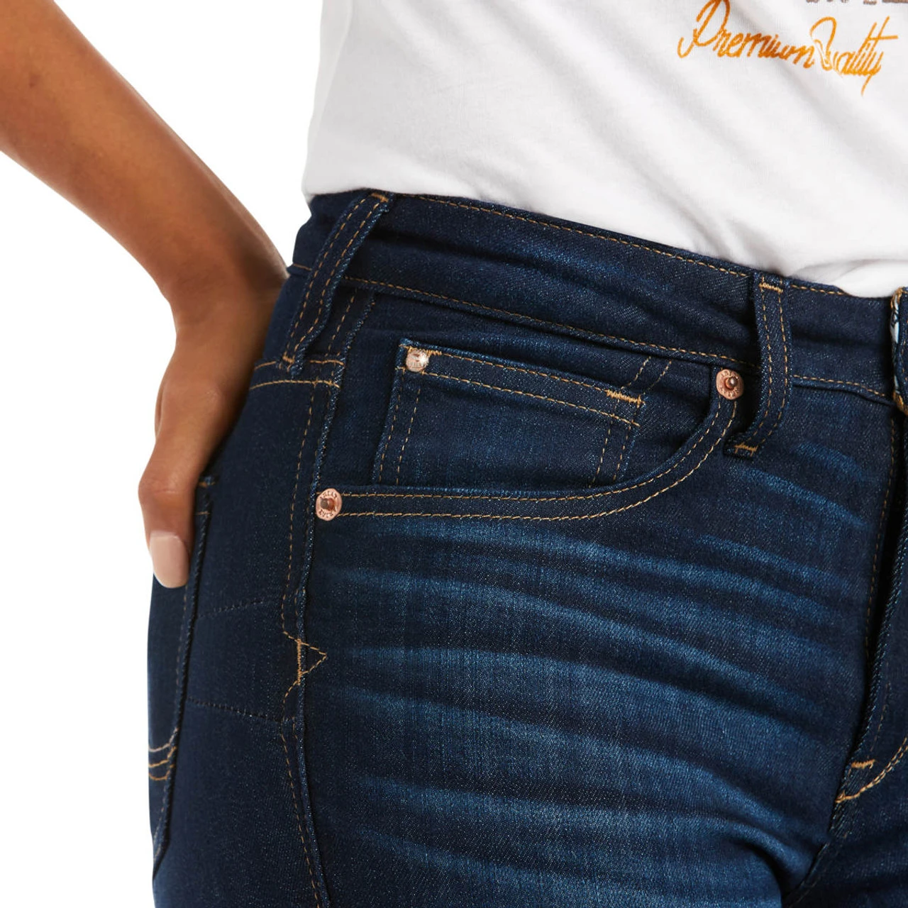 High rise with a boot-ready flare, these ‘70s-inspired jeans flatter in the arena or on the town. Subtle pocket stitching and a dark wash add to the vintage feel. Eco-friendly bonus: This pair was made with 50% less water.