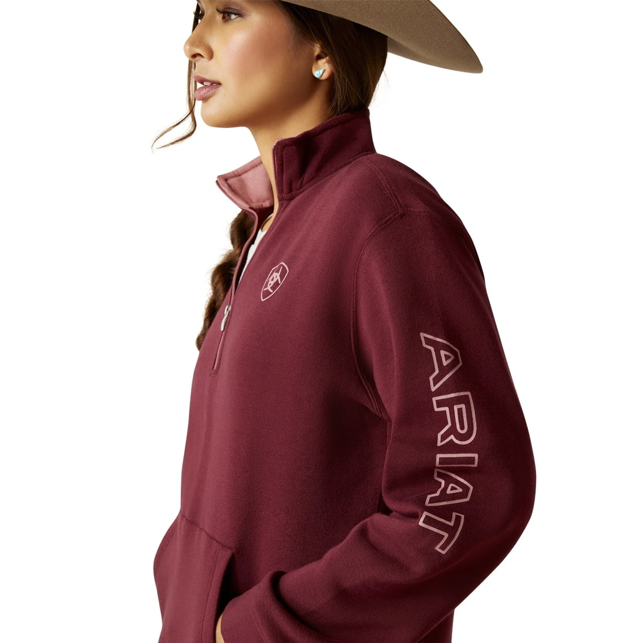Ariat Womens Tawny Port Logo 1/2 Zip Sweatshirt